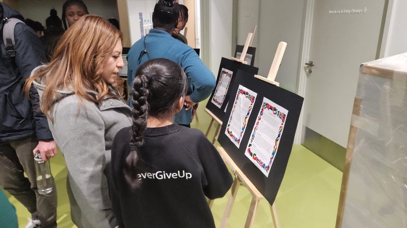 The project included autobiographies, written in English and the children's home languages, alongside QR codes linking to videos of students sharing their stories. Visitors also saw self-portraits, flag bunting, and a celebration of our status as a 'School of Sanctuary'. The exhibition was a huge success. Thank you so much to the families and representatives from Southwark Council, Notting Hill Genesis and The Una Marson Library that attended.